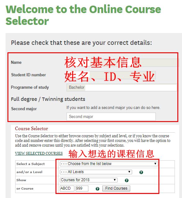 下半部分是选课系统,输入想选的课程信息或者课程代码,点击“Find Courses”