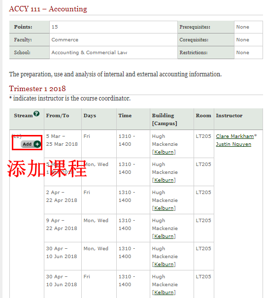 搜索课程信息后,相关课程就会显示。点击“Add”,即可添加课程。